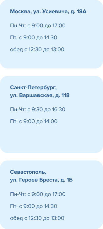 Время работы офиса: с 9:30 до 16:30 с понедельника по четверг, в пятницу с 9:30 до 14:00.
